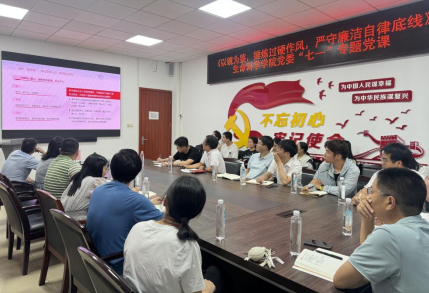 (通讯员:刘梦锜)为落实省委深入贯彻中央八项规定精神学习教育工作专班的工作要求,进一步加强学院党员干部的作风建设,学院党委于6月30日下午开展了“七一”专题党课活动。学院党委书记黄裕钊以《以镜为鉴,锤炼过硬作风,严守廉洁自律底线》为题,为学院师生党员代表讲授了一堂深刻、生动的专题党课。
