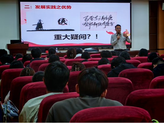 开班仪式结束后,团校首场专题课程接续进行,马克思主义学院教师王昊受邀作《比较视野:深刻把握中国特色社会主义制度的优越性——从“西方之乱”与“中国之治”的多维比较谈起》主题报告。王昊老师通过详实的数据、鲜活的案例和深入浅出的理性思辨,引导学员们深刻领悟“中国之治”的制度密码与独特优势。整场报告内容详实、逻辑清晰,学员们认真聆听、受益匪浅。