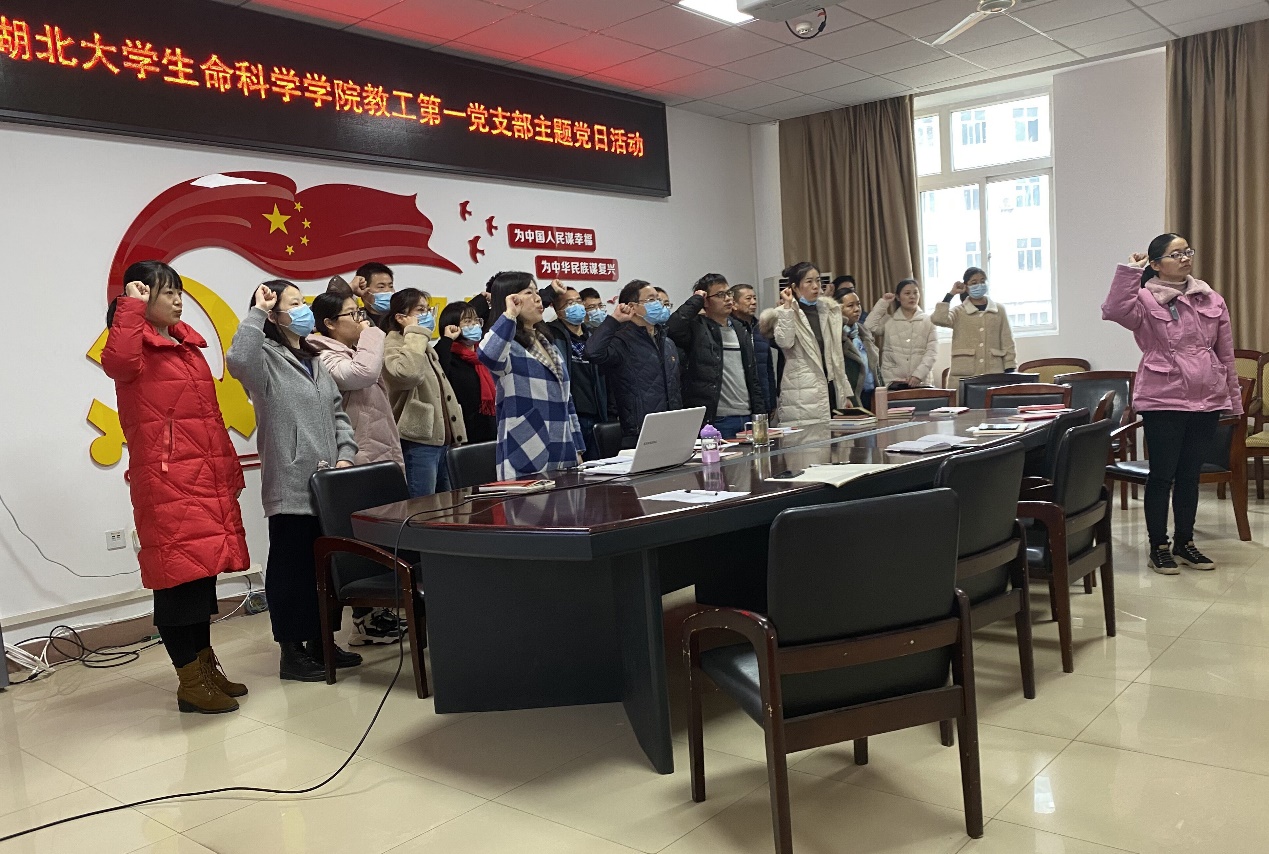 会议由支部书记张黎主持,首先由组织委员刘艳玲领誓,带领大家一起重温入党誓词并集体诵读党章第一章——党员,党员依次交纳本月党费。支部书记张黎代领大家学习学校下发的《关于巩固深化“不忘初心、牢记使命”主题教育成果的实施方案》,了解方案部署的10个方面任务。