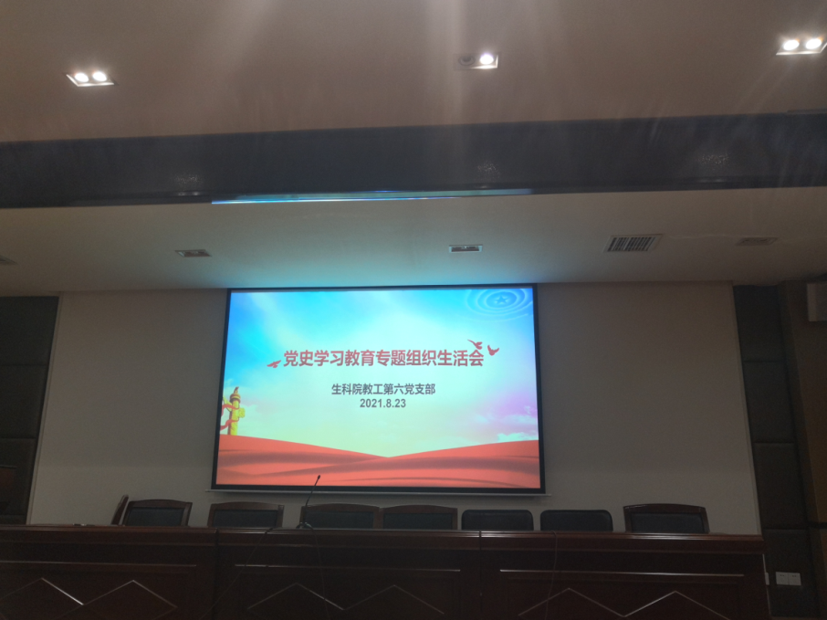 (通讯员:付冬)学史明理、学史增信、学史崇德、学史力行,为深入开展党史学习教育,生科院教工第六党支部于2021年8月23日下午举行专题组织生活会。会议由党支部书记李海涛同志主持,学院党委委员杨平仿教授到会指导。