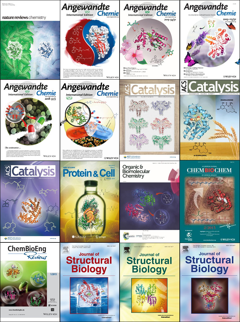64. Hu, Y.,# Liu, W.,# Malwal, S. R., Zheng, Y., Feng, X., Ko, T.-P., Chen, C.-C., Xu, Z., Liu, M., Han, X., Gao, J., Oldfield, E.,* Guo, R.-T.* Structures of iridoid synthase from Cantharanthus roseus with bound NAD(+), NADPH, or NAD(+) /10-oxogeranial: Reaction mechanisms. Angewandte Chemie International Edition, 2015, 54(51): 15478-15482. (Cover story)