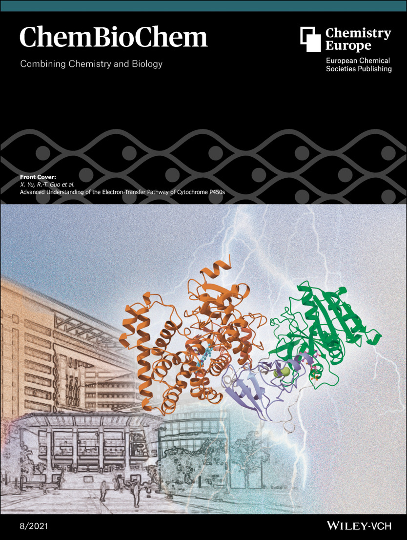 33. Chen, C.-C.,# Jian Min, J.,# Zhang, L., Yang, Y., Yu, X.,* Guo, R.-T.* Advanced understanding of electron transfer pathway of cytochrome P450s. ChemBioChem,2021, 22(8): 1317-1328. (Review, Cover story)